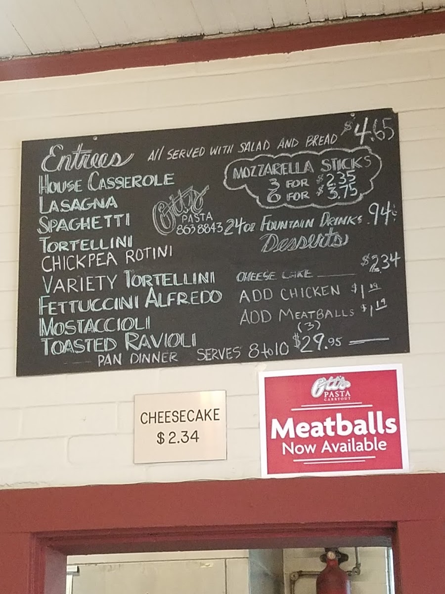 Ott's Pasta Carry Out Menu